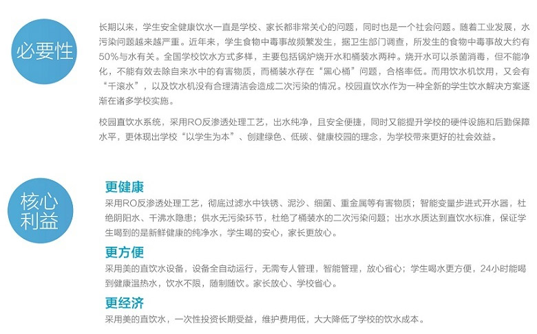 专为学校场所定制饮用水解决方案,针对儿童少年特性设计,保障师生饮水卫生,老师家长更放行。