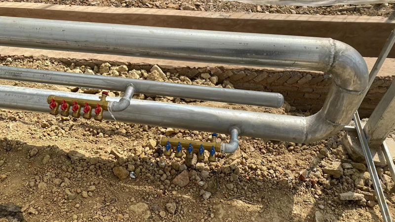 空气源热泵是一种不需要燃烧煤炭的设备。 它可以利用空气中存在的热量来制造和提供热水。 所以它的加热效率很高。 普通燃煤锅炉的热效率只有85%左右,而空气源热泵的热效率可以超过200%,最高可以达到400%。 热泵消耗1 kWh的电能,就可以从空气中搬运很多的热能。 在热泵单元提供大量的热水之后,再加上温室中大量的风机盘管和热水管,温室中的温度可以显着升高,从而为种植和育种提供了理想的生长环境。