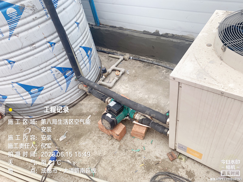 中国建筑第八工程局有限公司,太清路南延线项目生活区安装美的空气能热水器,解决工地施工人员生活区日常热水问题。
