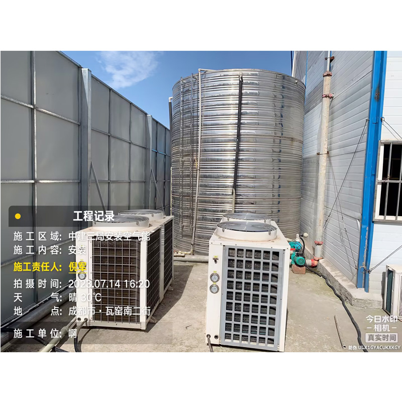 中国建筑第三工程局有限公司教科院项目,安装一套20吨美的空气能热水器,解决项目工作人员日常热水问题。