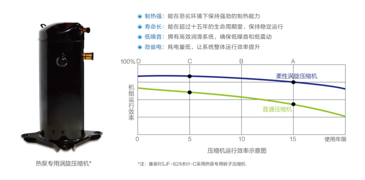 美的空气源热泵热水机采用国际知名品牌柔性涡旋压缩机,品质稳定可靠,热水机更加节能耐用