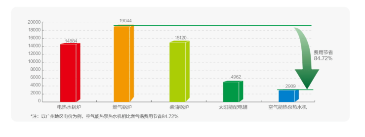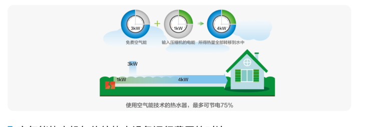 根据逆卡循环原理,机组以制冷剂为载体,以少量电能为驱动力,源源不断地吸收空气中难以利用的低品位热能,转化为可用的位势能,实现低温热能向高温热能的转移;再将高品位热能释放到水中制取生活热水,通过热水供应管理输送给用户满足生活热水及供暖需求。