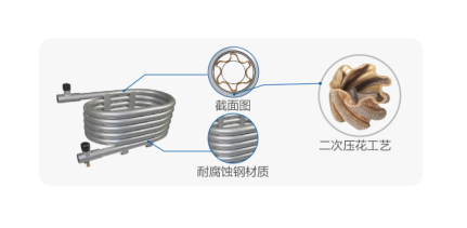 套管换热器具有同轴多头和二次压花工艺,提升热热效率。