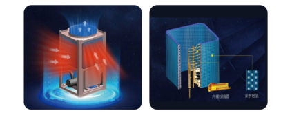 采用高效四面回风换热器,气流组织更均匀,大幅提升迎风面积和换热效率,节约机组占地空间.