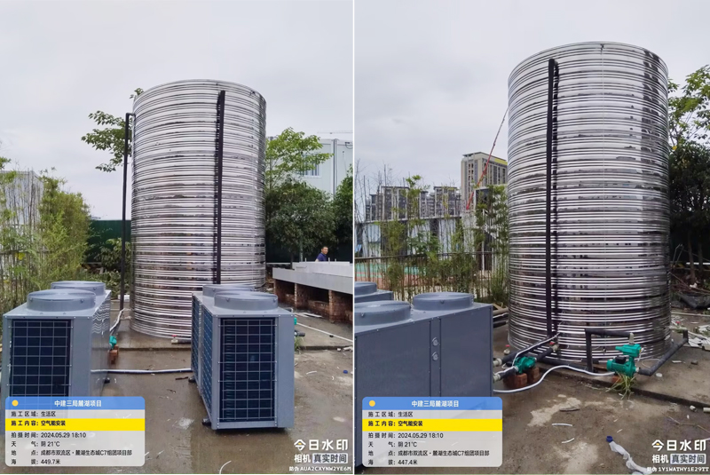 空气能热水器的工作原理是通过少量的电能驱动压缩机运行,从空气中吸收大量的热能来加热水。在这一过程中,消耗1份的电能驱动压缩机运行,同时可从环境空气中吸收转移约4份的热量到水中。因此,相对于传统的电热水器,空气能热水器可以节约近3/4的电能。也正是因为其节能、环保、智能的特点,被广泛应用于各种场合,特别是热水需求量大的场景。例如项目工地生活区、学校、医院等公共服务场所、畜牧业养殖、农业大棚……