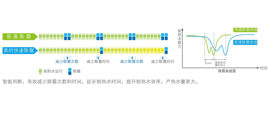 1.专门设计的系统除霜流路,解决了热水机中由于系统的特殊性导致的不能使用四通阀换向除霜的问题,有效保证除霜效果。除霜过程控制简单,系统稳定、可靠。